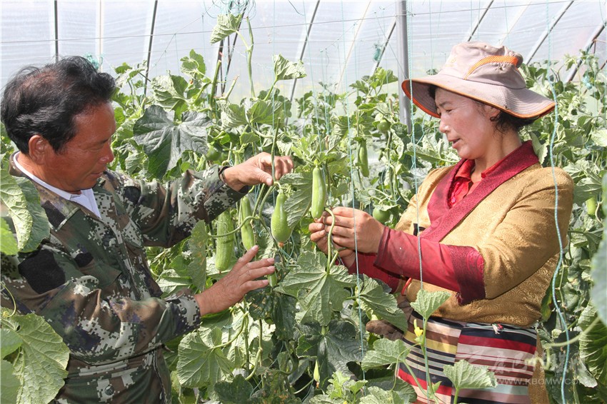 理塘縣甲洼鎮(zhèn)俄曲村貧困藏族農戶跟技術員學習蔬菜種植技術。 本網資料庫圖