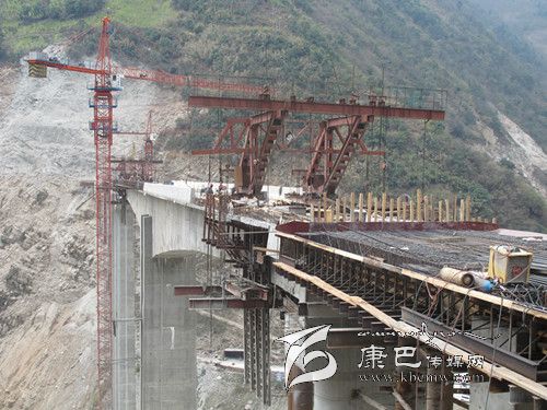 3月12日上午,記者在大崗山水電站S211復(fù)建公路工程(瀘石路)B標(biāo)段跨徑為296米的大渡河大橋(又名灣東大橋)的施工現(xiàn)場(chǎng)看到,高聳的吊裝機(jī)隆隆作響,T梁上鋼筋林立;戴著安全頭盔的施工人員正在精心“編織”鋼筋網(wǎng)陣,掛籃懸臂也同時(shí)在澆筑施工,大橋已初具雛形。連接大橋的聯(lián)合村隧道內(nèi),同樣一派忙碌的場(chǎng)面,挖掘機(jī)、運(yùn)輸車等各類工程車往來進(jìn)出,施工便道上馬達(dá)聲轟鳴;正在洞口緊張焊接的鉆孔臺(tái)架上劃出一道道閃亮的弧線;隧道內(nèi)燈火通明,工人們正有條不紊地在洞壁上鉆孔……