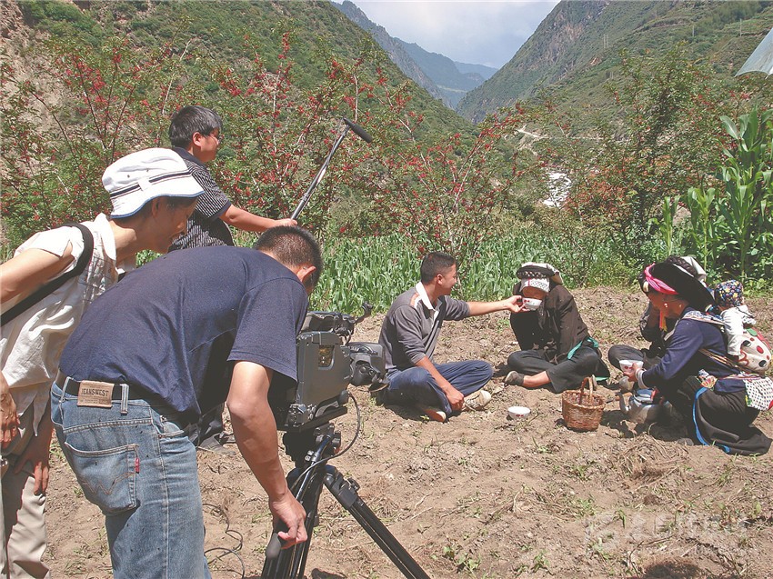 拍攝紀(jì)錄片《藏寨姐妹》。