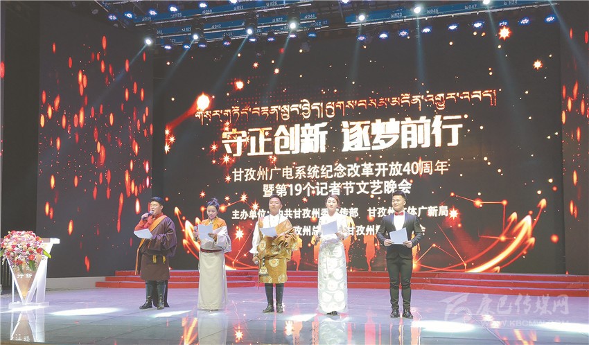 在州廣播電視臺(tái)文藝演播大廳舉行的慶祝記者節(jié)文藝晚會(huì)。