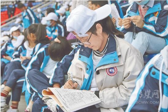 早上7點(diǎn)30分左右,記者來(lái)到這片特殊的學(xué)生方陣時(shí)發(fā)現(xiàn),不少學(xué)生把課本帶去了現(xiàn)場(chǎng),正趁著候場(chǎng)間隙埋頭苦讀。據(jù)康定中學(xué)老師李虓偉介紹,同學(xué)們是排練隊(duì)伍中進(jìn)場(chǎng)時(shí)間最晚、排練時(shí)間最短的一個(gè)團(tuán)隊(duì),“在不耽誤課程的情況下,孩子們將所有能抽出來(lái)的時(shí)間全部奉獻(xiàn)給這次演出了,所以每次排演總是格外地認(rèn)真,絲毫沒(méi)有怨言,為了節(jié)約時(shí)間,同學(xué)們還利用訓(xùn)練期間短暫的休息時(shí)間,埋頭溫習(xí)課本、做作業(yè)?!?/p>