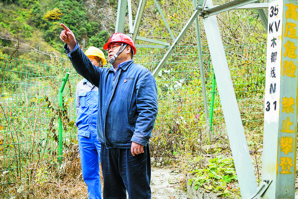 省勞模周大鵬帶領(lǐng)員工巡查線路。