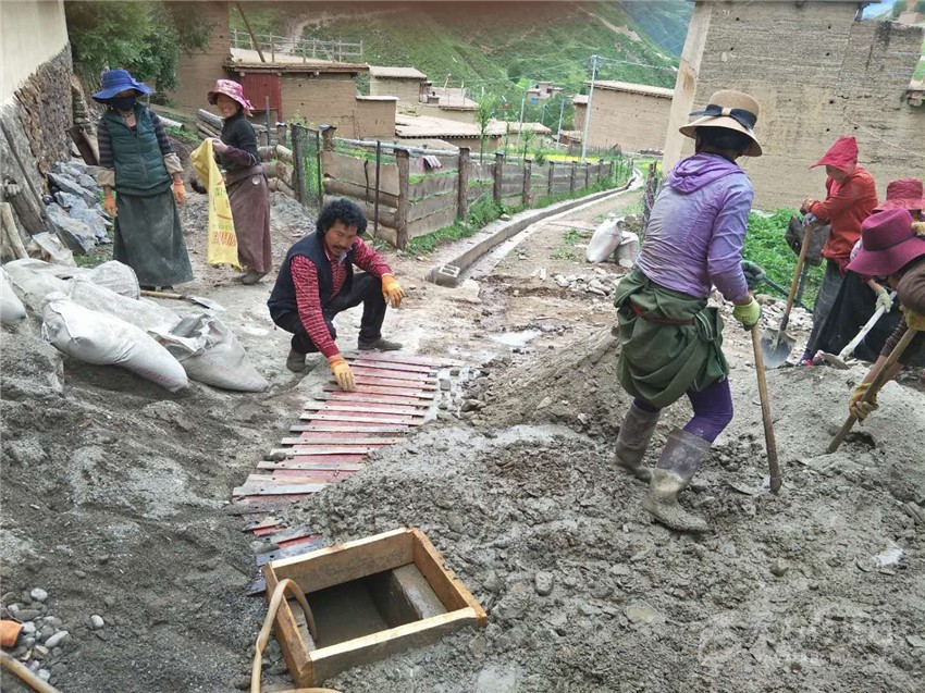 圖為其麥仁真帶領(lǐng)村民修建排水渠。