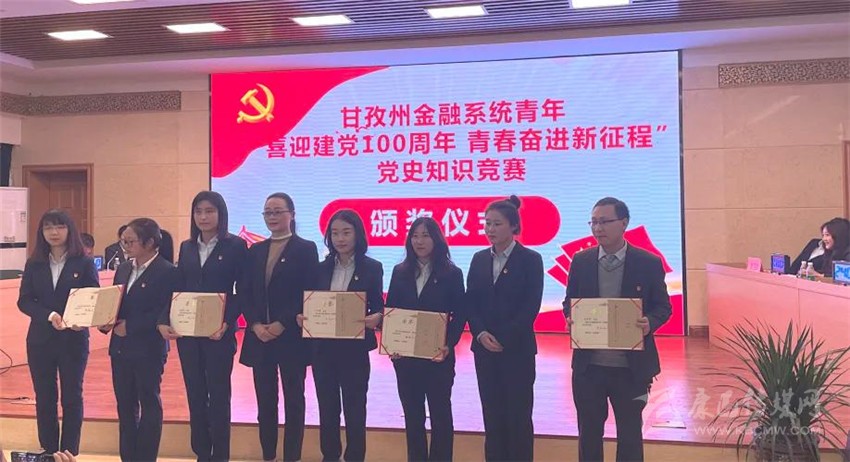 本網訊(陳建軍 江承艷)4月27日,農行甘孜分行黨史學習青年代表競賽小組在2021年甘孜州金融系統青年“喜迎建黨100周年 青春奮進新征程”黨史知識競賽中一舉斬獲三等獎。該知識競賽由人民銀行甘孜州中心支行舉辦,甘孜州金融機構15支代表隊參加競賽,農行甘孜分行黨委副書記、專家、副行長周莉萍及其他金融機構負責人出席現場并為所有選手加油鼓勁。競賽分為初賽和決賽兩個部分,初賽采用閉卷考試,決賽為現場搶答、必答等,甘孜分行青年代表隊以98分初賽筆試成績殺入決賽。在決賽環(huán)節(jié)中,農行青年員工代表積極搶答,沉著應戰(zhàn),流利回答,獲得裁判好評以及現場觀眾雷鳴般的掌聲。經過激烈角逐,農行代表隊取得個人第四名和團體三等獎的優(yōu)異成績?;顒幼詈螅w參賽、觀賽人員齊唱《唱支山歌給黨聽》,表達了對共產黨建黨100周年的深切祝福。