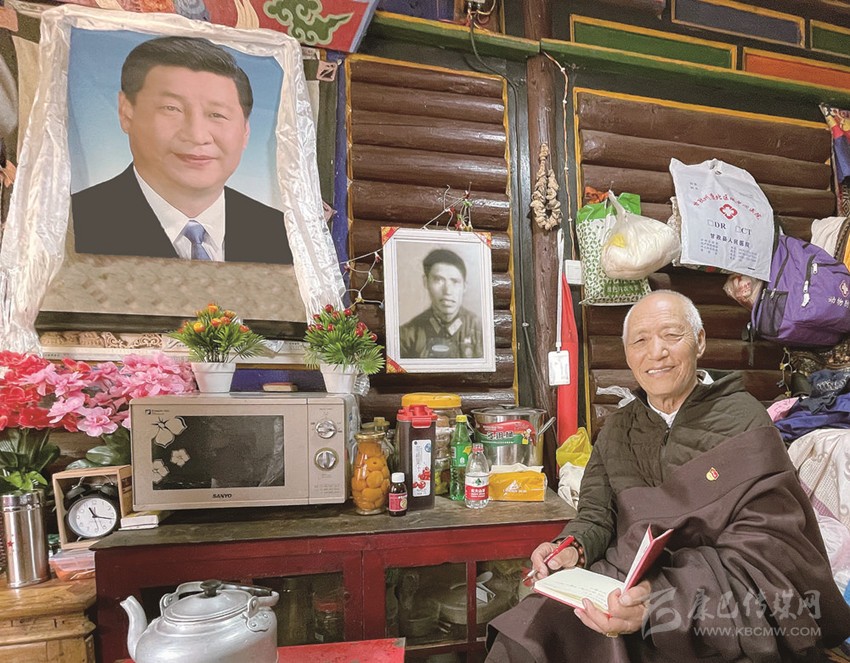 “這本上世紀60年代印的藏文版毛主席語錄,我不知道翻了多少遍,都快要翻爛了。”華發(fā)蒼顏,中氣十足的多加對記者笑言:“我從小是‘娃子’,根本認不到字,不管是藏漢文;但我現(xiàn)在能流利地讀寫藏文,全是藏民團里會藏文的漢族戰(zhàn)友教的;更有意思的是,我的漢話是藏民團里會說四川話的藏族戰(zhàn)友教的!”