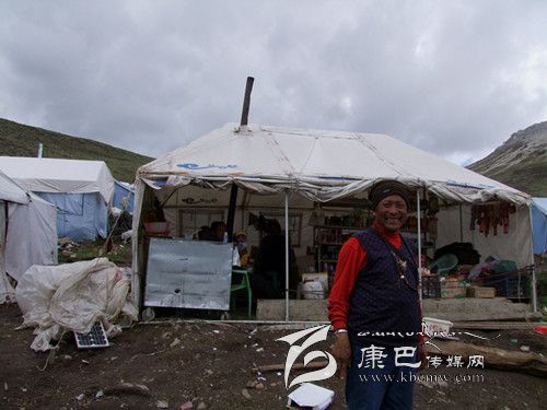 由于挖蟲草的時間前后近2個月,所以采挖蟲草的人往往都不回家,而是在山坳靠水的地方扎帳篷宿營。在蟲草采挖點,我們看到很多這樣的宿營地,或三、五頂帳篷扎堆,或三、五十頂帳篷聚居。在理塘縣曲登鄉(xiāng)阿加隆洼這個大的聚居地上記者看到上千頂帳篷整齊有序地排成行,不僅能看到帳篷外的煤氣罐和處處升起的炊煙,還能看到供娛樂和消遣用的臺球桌和能采購到日常生活用品的小商店,甚至還能看到升起的紅旗。聚居區(qū)如此龐大,其實并不都是采挖人。這其中還混雜著許多蟲草的收購人和兜售人,還有各種到這里來做生意賺錢的人,如一個小集鎮(zhèn)般熱鬧。