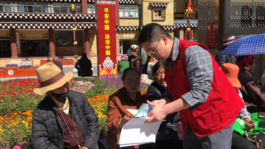工作人員正在為群眾講解垃圾分類知識(shí)。