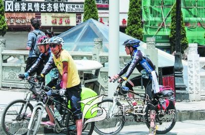 騎行游客在街頭休息。