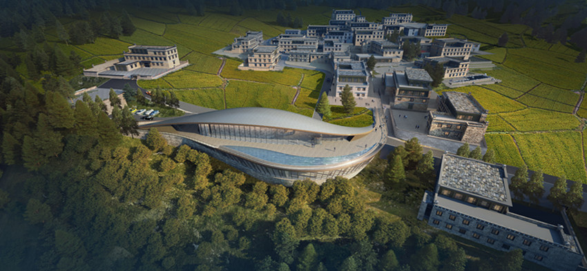 此外,在建造方式上香巴拉文化博物館基座外墻使用本地民居修建用的石材、木材,觀景大窗運(yùn)用現(xiàn)代幕墻技術(shù),屋頂采用金屬板材料。在功能布局上分為源遠(yuǎn)流長(zhǎng)香巴拉、香巴拉并不遙遠(yuǎn)、永遠(yuǎn)的香巴拉三個(gè)部分,展示本地自然與人文多樣性與獨(dú)特性。