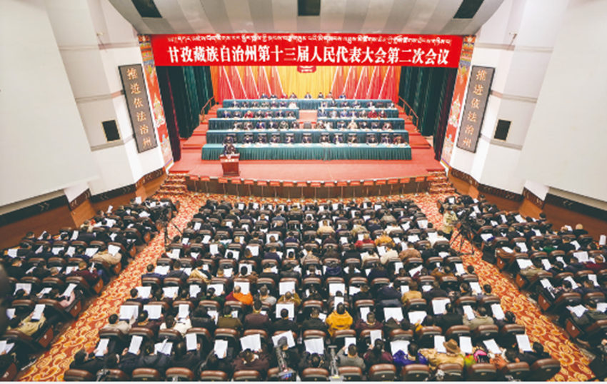 新時代勇?lián)率姑?,新征程展現(xiàn)新作為。2024年是新中國成立75周年,是全國人民代表大會成立70周年,州人大及其常委會要堅持以習近平新時代中國特色社會主義思想為指導,深入學習貫徹黨的二十大精神和習近平總書記對四川工作系列重要指示精神,全面貫徹省委、州委全會決策部署,緊緊圍繞州委總體工作格局,豐富和發(fā)展全過程人民民主甘孜實踐,在堅定正確政治方向上更加旗幟鮮明,在圍繞中心服務大局上更加彰顯擔當,在聯(lián)系代表服務群眾上更加傾心用情,在推進人大事業(yè)發(fā)展上更加勇于創(chuàng)新,讓人民代表大會制度這一人類政治制度史上的偉大創(chuàng)造扎根雪域高原,綻放更加燦爛的花朵。