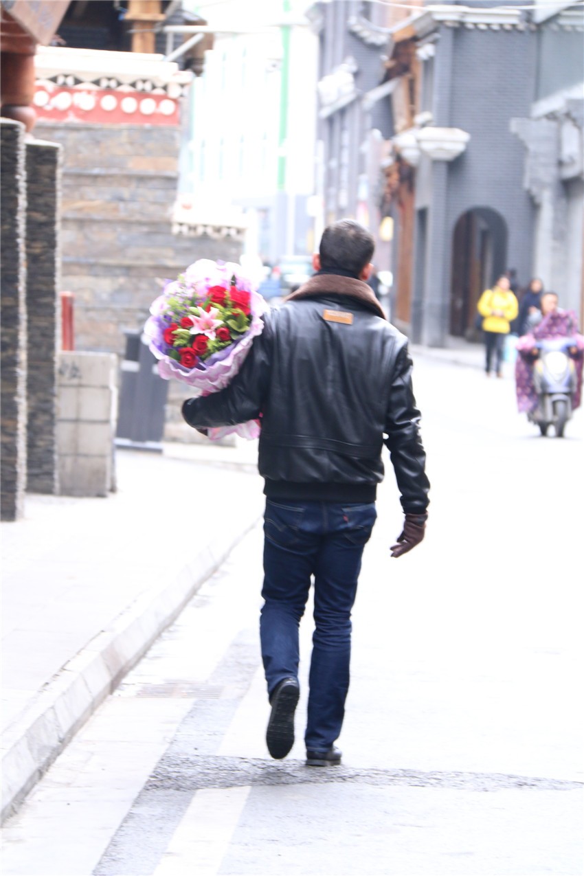 愛神阿佛洛狄特為了追尋情人阿多尼斯,在玫瑰花叢中奔跑,被花刺刺傷,白色的玫瑰花因其血液浸染從此變成紅色的故事,玫瑰便成了愛情的象征和傳情的首選信物?,F(xiàn)在,用一束精心挑選的玫瑰向心愛的那個(gè)她表達(dá)濃烈、深沉的情意已是康定人過情人節(jié)的重要元素。微風(fēng)中、花店里,那一束束繽紛燦爛的玫瑰,不僅承載著花店老板的經(jīng)濟(jì)收入,更承載著眾多男女的愛情收獲,儼然是最鮮明的節(jié)日符號(hào)。而玫瑰花必不可少的“搭檔”便是一張泣血陳“情”的賀卡,而寫賀卡最佳姿勢(shì)恐怕應(yīng)該是單膝跪地。