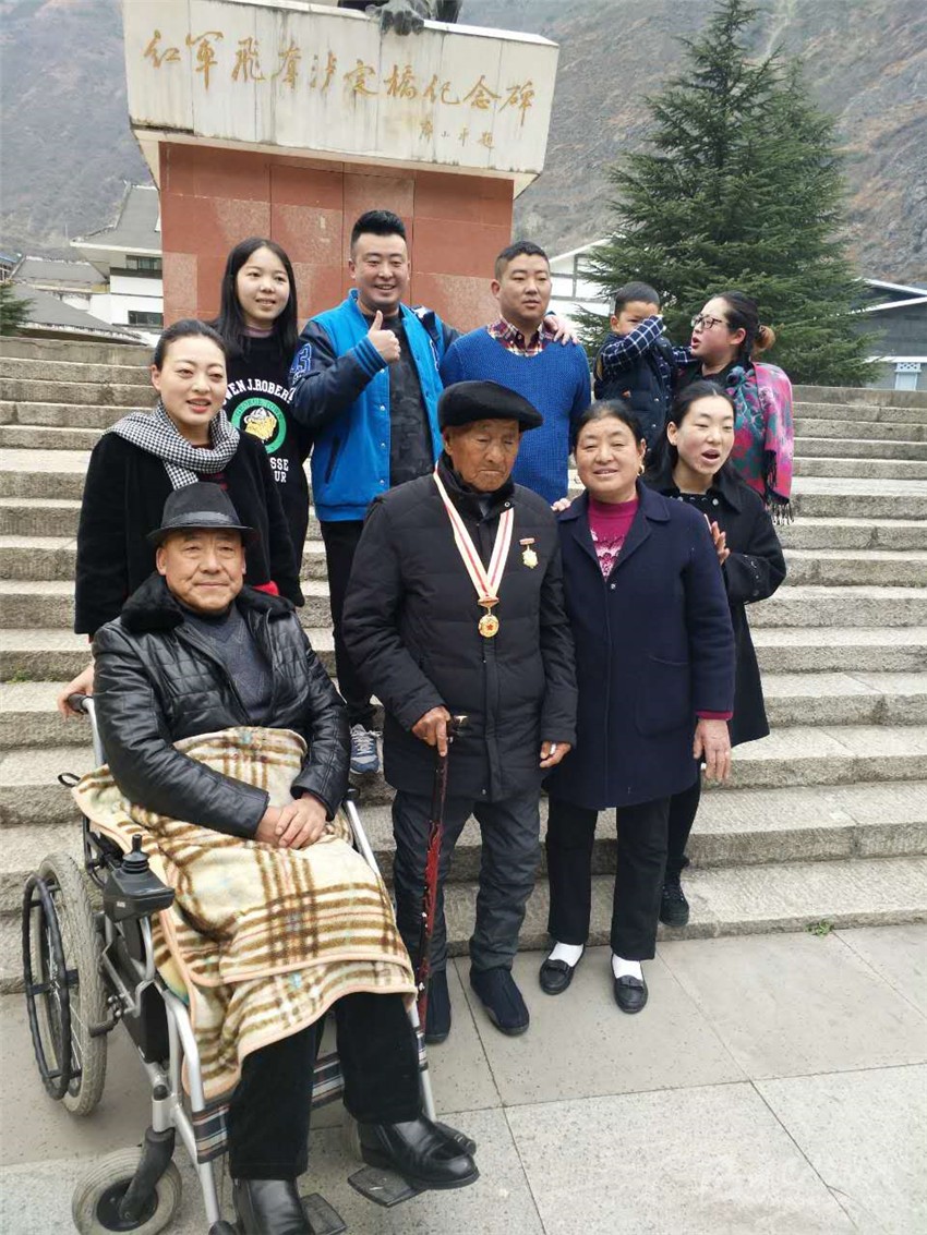 王瑞生專(zhuān)門(mén)帶領(lǐng)28名兒孫們前往瀘定橋紀(jì)念碑前合影,向他們講述紅軍長(zhǎng)征這段歷史。他說(shuō)得最多的一句話就是,“只有共產(chǎn)黨才能給我們帶來(lái)幸福生活,要不忘黨恩,回報(bào)社會(huì)。”老人特殊的紅軍情結(jié)感染著兒孫們,老人傳承著紅軍精神,不忘初心,永遠(yuǎn)向前?!袄先松砩象w現(xiàn)的不向困難低頭,堅(jiān)強(qiáng)不屈的精神,正是當(dāng)前開(kāi)展精準(zhǔn)扶貧工作所需要倡導(dǎo)的精神,只要我們發(fā)揚(yáng)紅軍精神,就一定能夠過(guò)上好日子。”老人的孫子告訴記者,在老人的激勵(lì)下,現(xiàn)在家人昂揚(yáng)向上,幸福美滿(mǎn)。