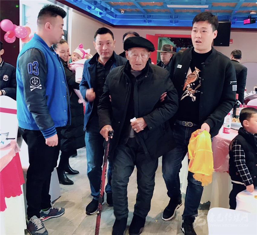 3月5日,在瀘定縣烹壩鄉(xiāng)十里香酒店,按照當(dāng)?shù)貍鹘y(tǒng),王瑞生的兒孫們提前為他隆重過(guò)百歲大壽。雖然已近百歲高齡,但王瑞生精神矍鑠,思路清晰,談吐自如,面色紅潤(rùn)的他身著簡(jiǎn)樸,胸前始終戴著2016年由中共中央、中央軍委頒發(fā)的“中國(guó)工農(nóng)紅軍長(zhǎng)征勝利80周年紀(jì)念章”,接受親友們的祝福?!白D】甸L(zhǎng)壽,開(kāi)開(kāi)心心”。親人們不絕于耳的祝福,老人心滿(mǎn)意足,笑容滿(mǎn)面?!昂?,好,我的家人團(tuán)圓和睦,家庭幸福,是我最大的心愿?!比缃?,老人已是四世同堂,家人濟(jì)濟(jì)一堂,親情流淌,老人幸福開(kāi)懷。