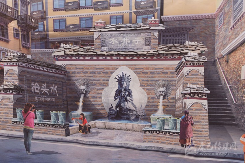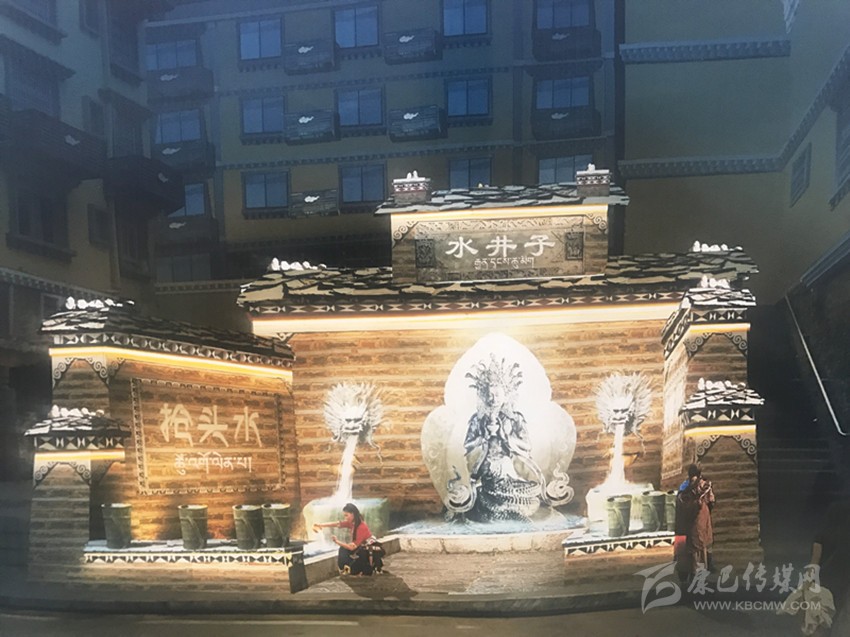 在現(xiàn)場(chǎng),“水井子”原址已被圍擋封閉施工。根據(jù)設(shè)計(jì),此次提升將融入“搶頭水”民族習(xí)俗,并結(jié)合互動(dòng)性祈福、見(jiàn)證愛(ài)情的表現(xiàn)手法旨在將水井子打造成為康定城中的體驗(yàn)式民俗景點(diǎn)。從外觀上看,內(nèi)街水井依然采用開(kāi)放式外墻,正中神龕放置藏族水龍王塑像,兩邊塑造龍頭,以“二龍噴水”景觀作為新的出水方式,下方池邊則安放傳統(tǒng)背水姑娘雕塑。