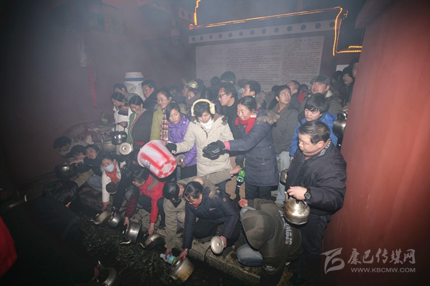 “每年大年三十我都會(huì)在這里來(lái)?yè)岊^水,傳說(shuō)郭達(dá)山神和跑馬山仙女會(huì)化身為一對(duì)金鴨在里面戲水。老人們說(shuō)大年三十到正月初一‘翻年’那個(gè)節(jié)點(diǎn)來(lái)取水,就能看見(jiàn)金鴨,而水也等同于仙液?!痹趧倓偰隄M40歲的陳先生兒時(shí)的記憶中,這里每到春節(jié)“就會(huì)有人提著水桶,拿起茶壺排起長(zhǎng)龍來(lái)看金鴨,搶頭水?!?/span>