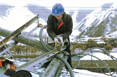 本網(wǎng)訊 4月27日,康定市突降大雪,折西地區(qū)(新都橋、塔公、沙德、甲根壩等地區(qū))尤其嚴(yán)重。受本次連續(xù)的大風(fēng)雪影響,整個(gè)折西地區(qū)約25公里的線路嚴(yán)重覆冰,多處10千伏線路倒桿斷線,造成新都橋等12個(gè)鄉(xiāng)8758戶用戶停電。