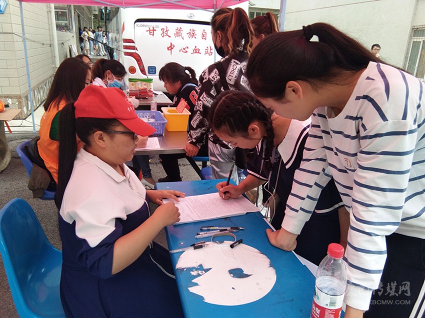 四川民族學(xué)院師生和志愿服務(wù)隊(duì)在校園內(nèi)開展無償獻(xiàn)血活動(dòng)。