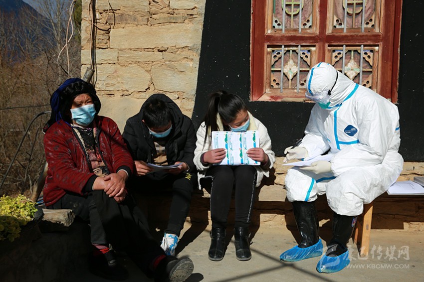 2月4日上午,他來到格宗鄉(xiāng)衛(wèi)生院?!澳銈冞@邊發(fā)熱病人多不多,有外地來的人員嗎?”他一邊檢查發(fā)熱門診登記表,一邊詢問。指導完后,他又馬不停蹄來到交通檢查點上,發(fā)放宣傳單和防疫物資,提醒卡點醫(yī)務(wù)人員和公安干警做好科學防護。