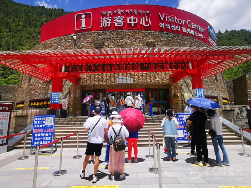 游客有序進(jìn)入木格措游客中心。
