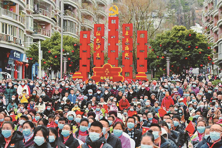 圖為當(dāng)?shù)厝罕娪^看演出。 四川日?qǐng)?bào)記者 向宇 攝