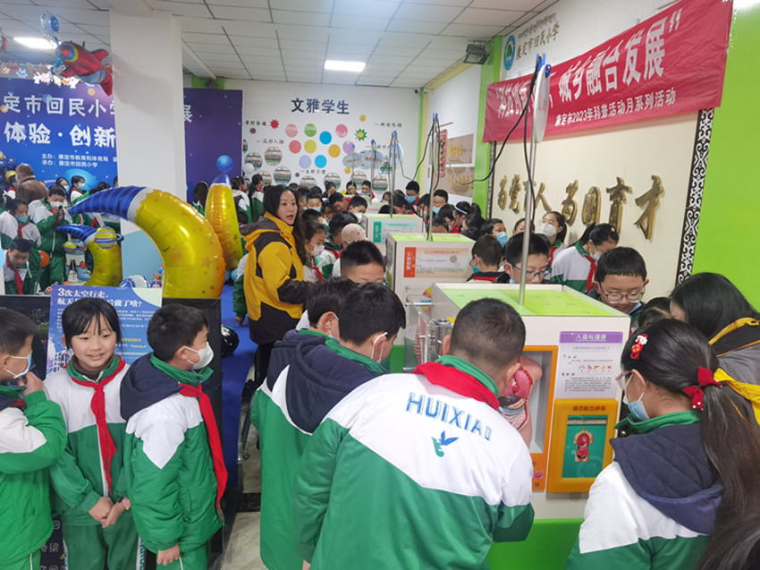 這是回民小學(xué)第三屆校園科技節(jié)活動(dòng)上的精彩一幕,每年的科技節(jié)都是該校全體師生翹首以盼的“重頭戲”。今年的科技節(jié)以“逐夢九天,強(qiáng)國有我”為主題,由康定市教體局、康定市科協(xié)主辦,回民小學(xué)承辦,希望學(xué)生們能夠在科技實(shí)踐、體驗(yàn)和創(chuàng)新中把握未來。