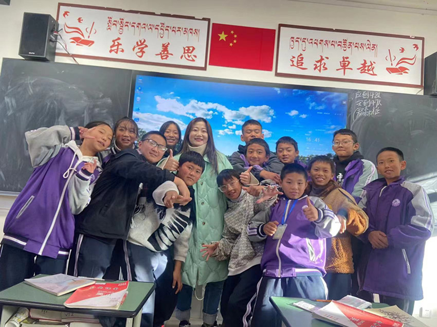 “見到來自婺城的‘娘家人’,真的太親切了?!背跻妼O川茗,她剛給道孚中學(xué)初一(9)班的學(xué)生上完課,回到辦公室看到筆者,滿臉笑意。