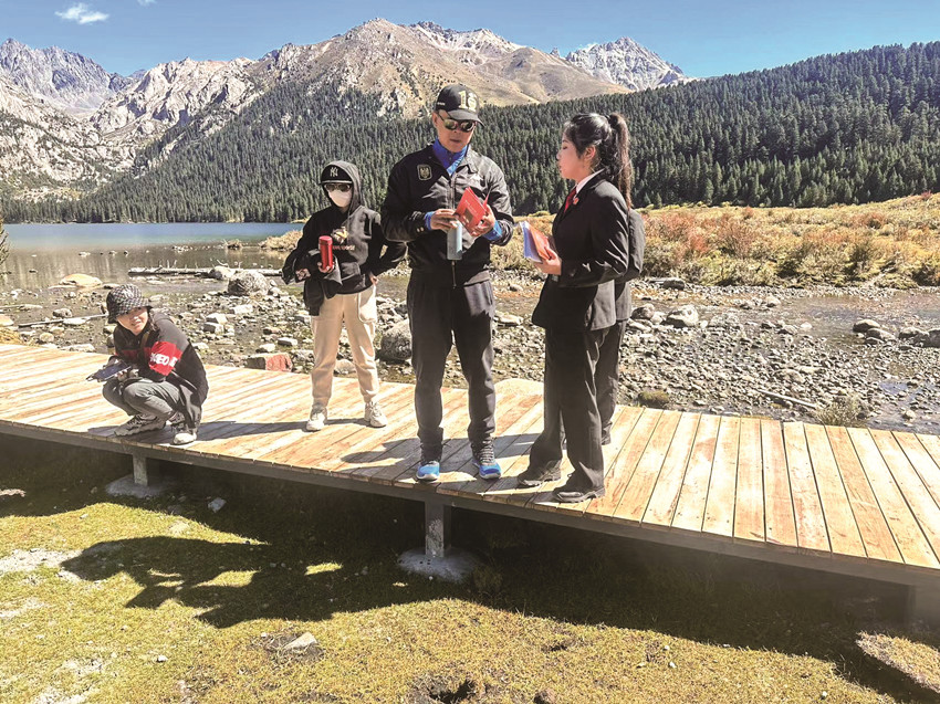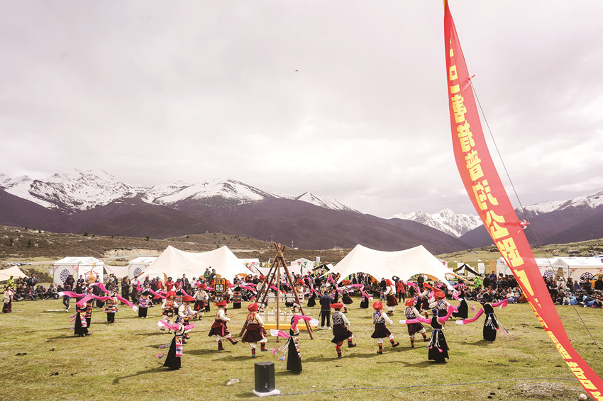 皚皚雪山相伴,莽莽森林環(huán)繞,措普湖猶如一面鏡子靜靜地躺在雪山下。湖邊草地上歡快的人們,或手拉手,跟著弦音學習巴塘舞蹈,或手捧一杯藏式奶茶,躺在沙發(fā)上,享受悠閑時光。