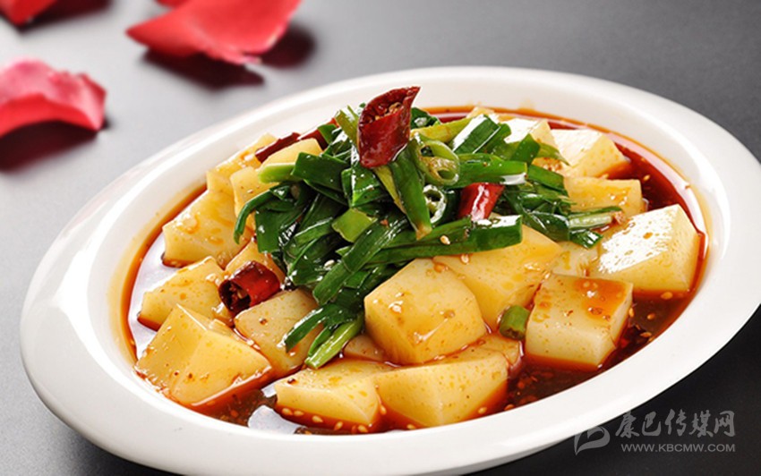 3、攪團(tuán):將清水在鍋內(nèi)燒開(kāi)后,逐量撒入極細(xì)的玉米面粉,以當(dāng)年新產(chǎn)的小金黃玉米粉為佳,用竹筷攪拌,此時(shí)灶中火要猛,直到攪成糊狀,然后蒙蓋一層新鮮潔凈的芭蕉葉或青菜葉,再蓋上鍋蓋文火蒸20—30分鐘,用大碗盛起;鍋內(nèi)打油湯,燒煮酸油菜湯,其油鹽調(diào)料如一般湯羹(酸油菜即以野生油菜莖葉,洗凈,在開(kāi)水鍋內(nèi)略煮一下,即撈起置于木盆或瓷盆內(nèi),趁熱壓緊覆蓋閉氣,隔夜后即成一種酸味菜,可炒食,亦可煮湯食,其味略酸而鮮美爽口,并有一種特殊香味,本地人歷來(lái)皆愛(ài)食之。