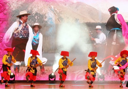 酒歌,藏語稱“羌諧”,流行于我州各縣。除主要幾種曲調(diào)普遍傳唱外,各地還有各自的唱法?!扒贾C”是在重大節(jié)日、迎接貴賓、親友歡聚時(shí),興之所至,親友之間相互敬酒,對待貴賓則高舉酒杯以誠相敬。還有一種只唱不舞的酒歌,即“央金道道”。曲調(diào)優(yōu)美,音韻悠長。