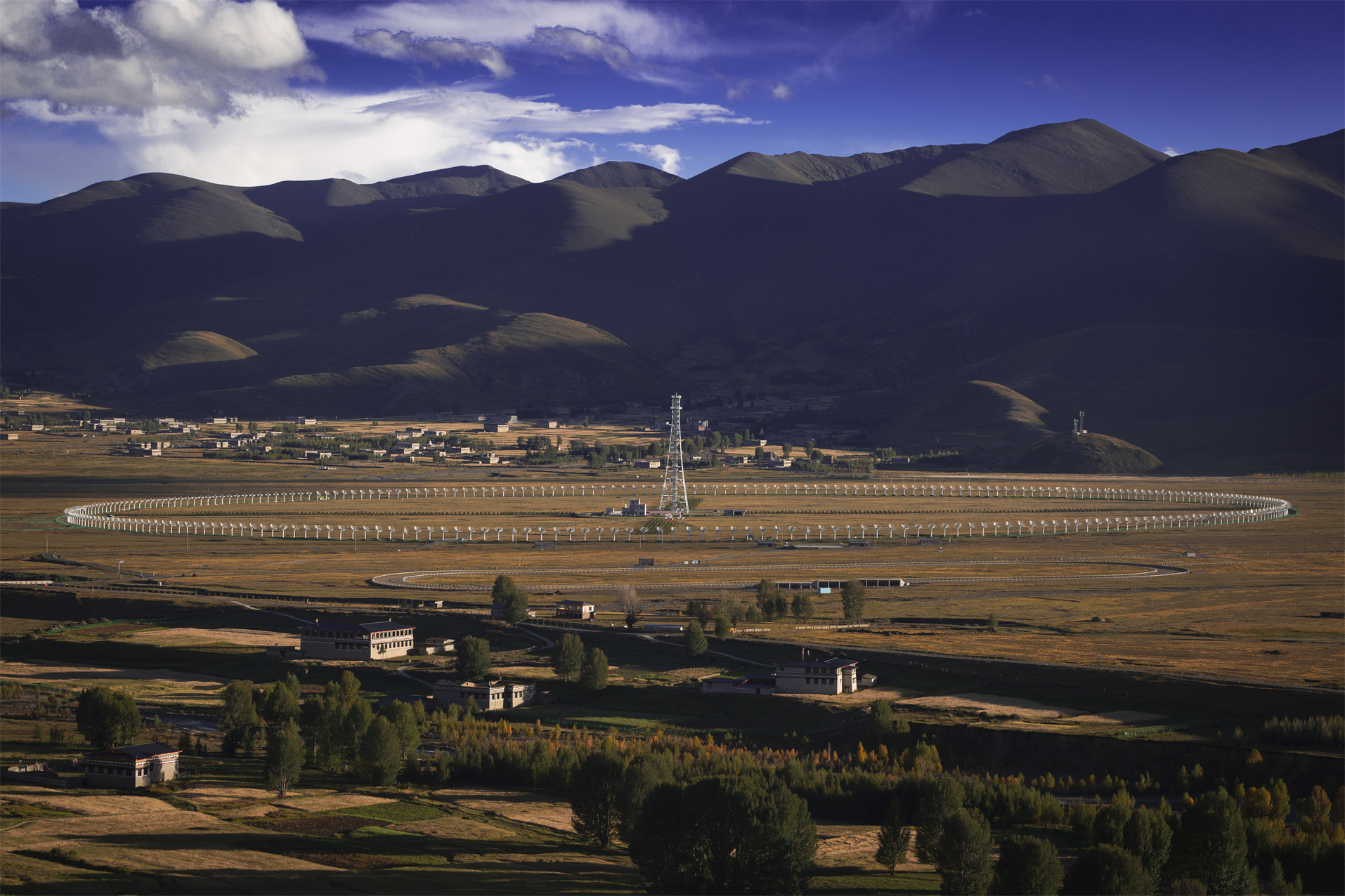 稻城因海拔高、地勢平坦、空氣潔凈、大氣視寧度和透明度高,被認(rèn)定為天文觀測的最佳地之一。2013年,國家在這里啟動了天文科技集群規(guī)劃,設(shè)計重大天文科技項(xiàng)目9個,目前已完成了高海拔宇宙線觀測站、子午二期等3個重大科學(xué)裝置。其中,海拔4410米的高海拔宇宙線觀測站(也稱為“拉索”),由中國科學(xué)院高能物理研究所的科學(xué)家們耗時4年建設(shè)完成,是目前世界上海拔最高、規(guī)模最大、靈敏度最強(qiáng)的宇宙射線探測裝置。2023年,全球規(guī)模最大的太陽射電成像裝置——“子午工程”二期圓環(huán)陣太陽射電成像望遠(yuǎn)鏡也在稻城縣主體完工。