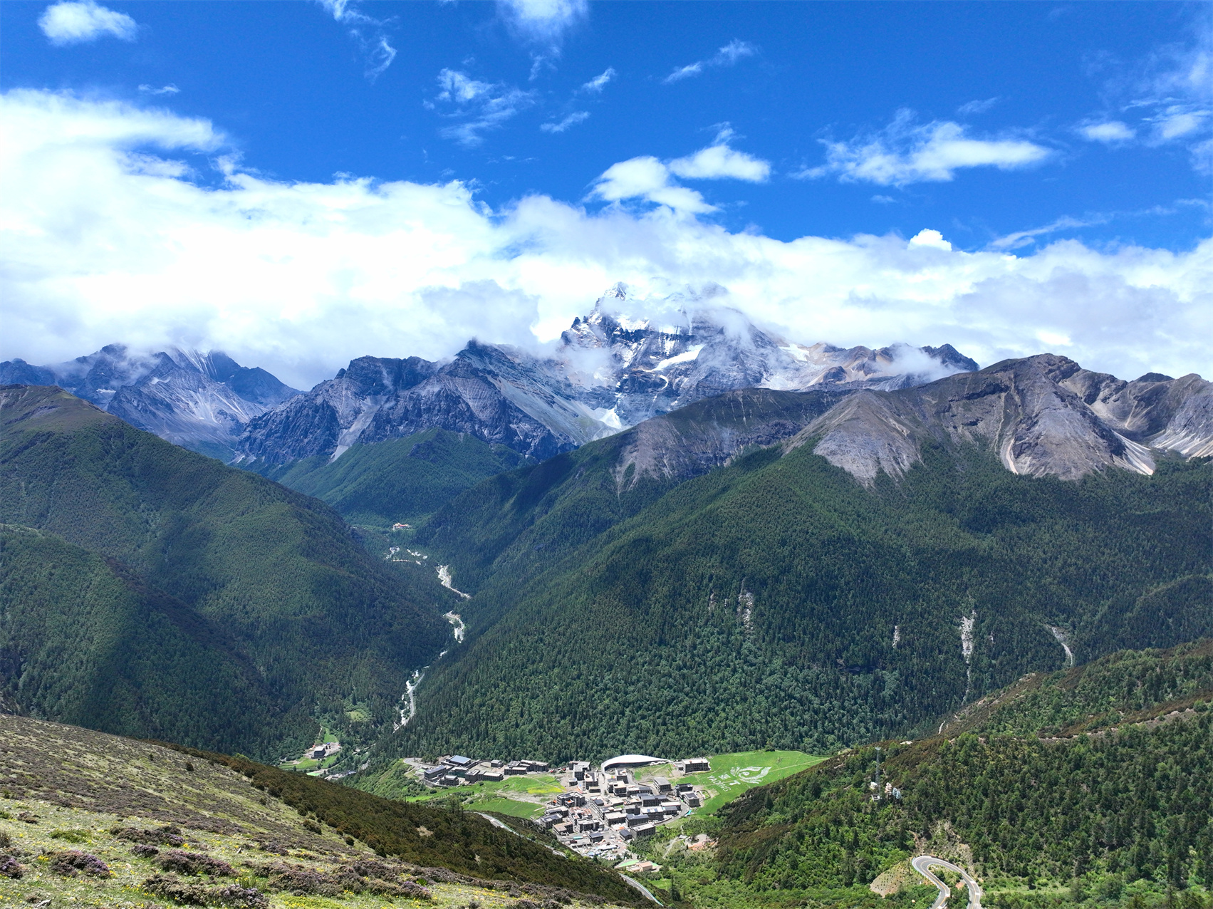 川西高原的氣候高深莫測。7月,稻城縣的夏季才姍姍來遲。藍(lán)天白云之下,牛羊悠然自得;巍峨雪山之巔,雄鷹展翅翱翔;蒼茫草原之上,野花肆意絢爛……仙乃日、央邁勇、夏諾多吉三座神山化身天地間最偉岸的守護(hù)者,守護(hù)著層林、遠(yuǎn)山、藍(lán)天、白云、飛鳥,美得不可方物的一切。