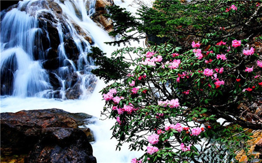 杜鵑峽東連七色海,西接野人海,峽谷長(zhǎng)6公里。峽谷中,溪澗時(shí)而奔流,時(shí)而舒緩,飛珠濺玉,溪岸兩邊林木蔥郁,尤以原始杜鵑林引人注目。這里的杜鵑花千姿百態(tài),艷麗多彩。有的花樹高達(dá)數(shù)丈,猶如臨空欲飛的散花仙女;有的矮不盈尺,恰如鋪展的裙裾;有的高居山崖,迎風(fēng)搖曳,頻頻向來(lái)賓致意;有的豎立溝谷,亭亭玉立,向游客含羞行禮;有的花大如海碗,有的花小似紐扣;紅、黃、藍(lán)、白、紫、似珊瑚,賽珍珠,一團(tuán)團(tuán),一簇簇,滿山是花的世界,滿峽是花的海洋,她匯聚了杜鵑花族中68個(gè)品種,從4月中旬先后開放至7月,花期長(zhǎng)達(dá)4個(gè)月。