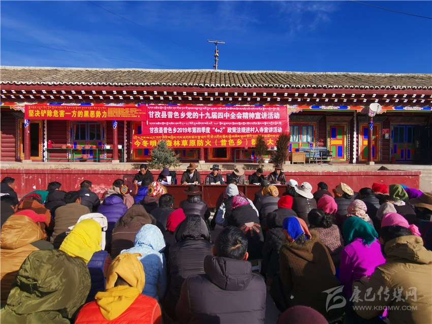 進門右墻上鑲嵌著用藏、漢、英三種文字撰寫的《水井子記》漢白玉石刻橫碑,其碑長4米、寬1.5米,左墻上一幅大型石刻畫,用虛實交錯的手法,把《水井子記》全文內(nèi)容形象地繪于其上,引人入勝。三方墻頭均采用藏族傳統(tǒng)建筑裝飾巴書,上有藍天白支,充滿《康定情歌》的神韻。整體色調(diào)以土紅色為基調(diào),色彩層次分,絢麗多彩,自然景觀和人文景觀融為一體,交相輝映。