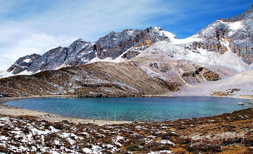 五色海位于仙乃日與央邁勇兩座神山之間,當?shù)厝诵闹械氖ズ?/span>