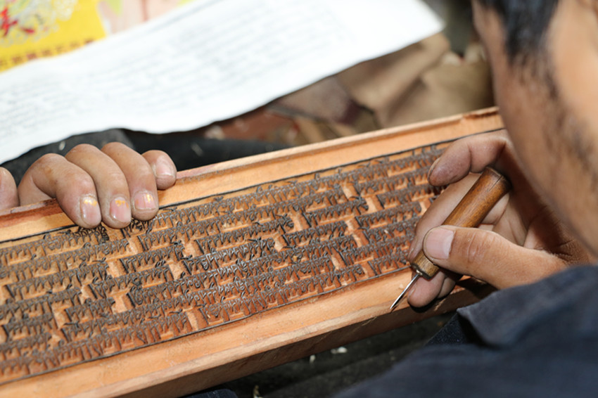 彭措澤仁現(xiàn)在的主要工作是核對、修復(fù),幾千塊有破損、錯字或被老鼠咬壞的印版,經(jīng)他手得以復(fù)原。每完成一塊,彭措澤仁都會雙手將印版高舉過頭,閉目許愿。這是“敬畏之心”。